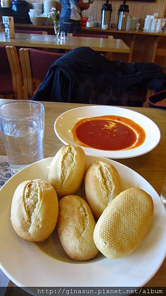 這是每日湯+麵包,全部自助,點了要自己去拿